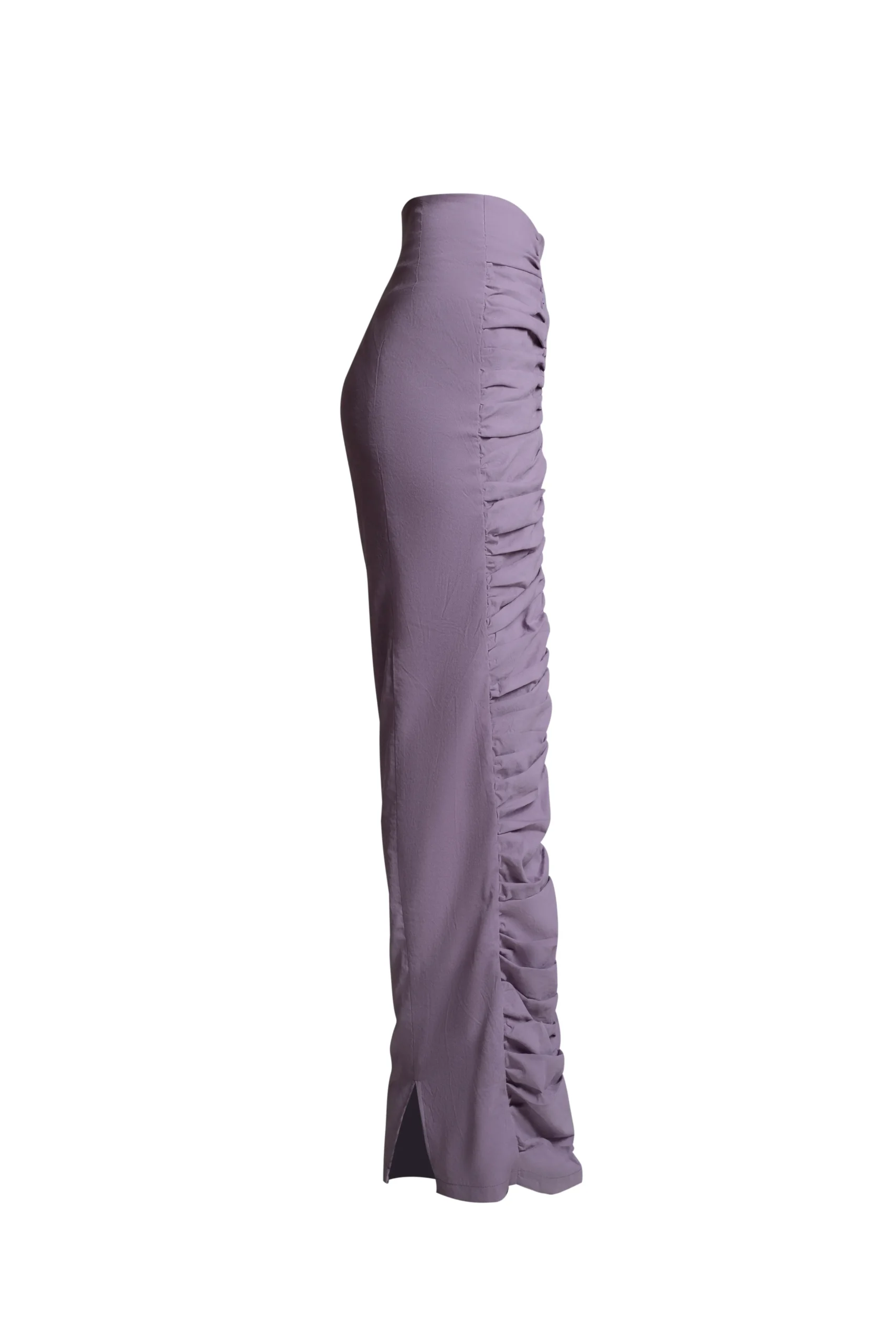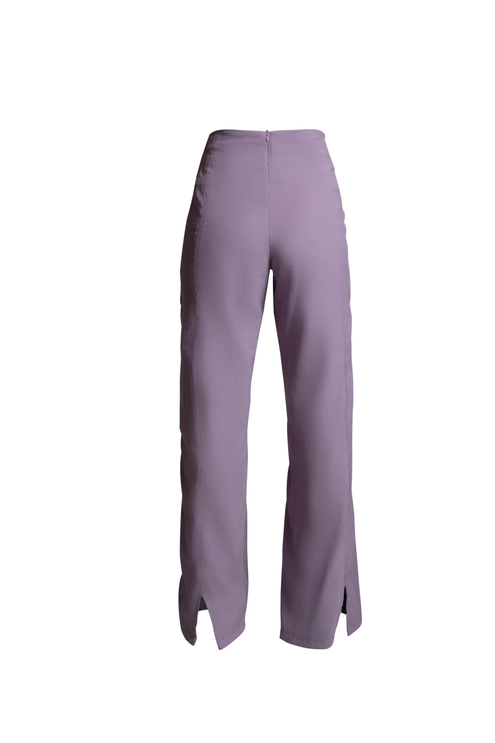 Este pantalón destaca por su diseño, con un delicado recogido en la parte delantera que aporta textura y originalidad. Su leve acabado satinado le confiere un toque elegante, mientras que el ajuste a la cadera realza la figura. La abertura de 10 cm en la parte trasera de la bota añade movimiento y un detalle sutil al caminar, fusionando estilo y confort.
